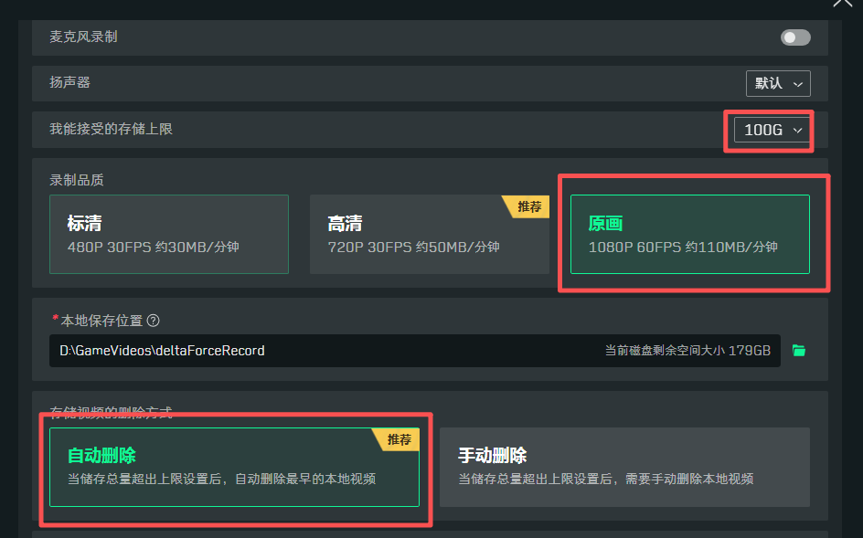 注:如果要同时录制自己的麦克风声音,打开麦克风录制即可。推荐使用软编使用CPU进行录制,不增加显卡负担。