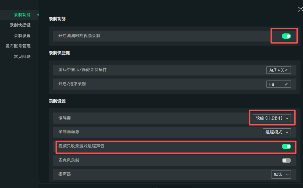 注:如果要同时录制自己的麦克风声音,打开麦克风录制即可。推荐使用软编使用CPU进行录制,不增加显卡负担。